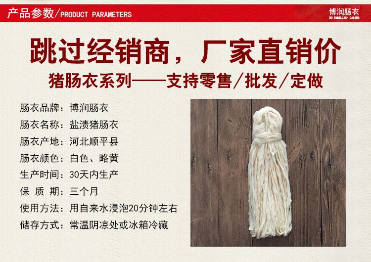 6.關(guān)于腸衣的出廠日期問題::本店是廠家直銷腸衣,將剛出生產(chǎn)線的腸衣直接送到您的手中。
