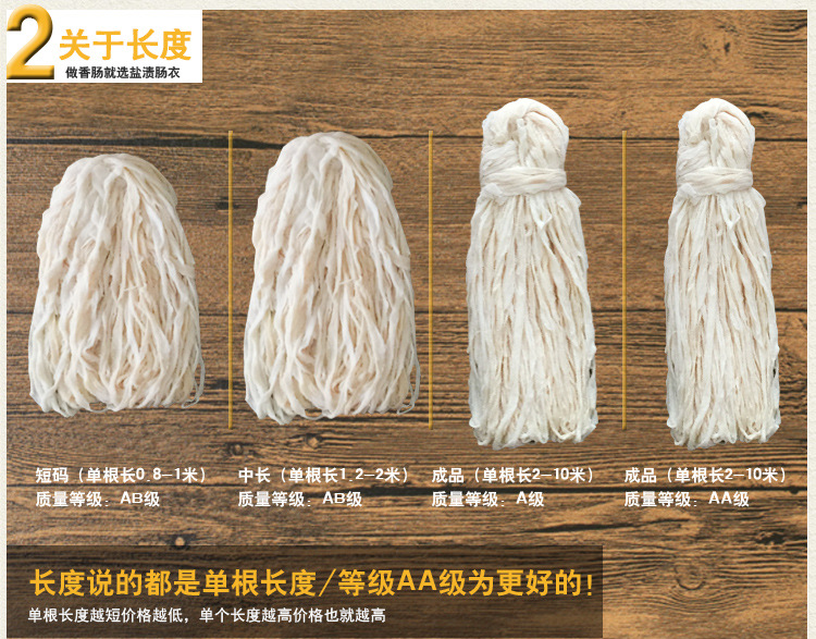3.腸衣的重量問題:只要灌過香腸的親都知道,腸衣是按長度出售的,跟重量沒多大關(guān)系,鹽漬腸衣的重量和干濕度及鹽分的多少都有直接關(guān)系,因此親們在購買腸衣是不要過于關(guān)注腸衣的重量而是應(yīng)該關(guān)注腸衣每件的總長度。
